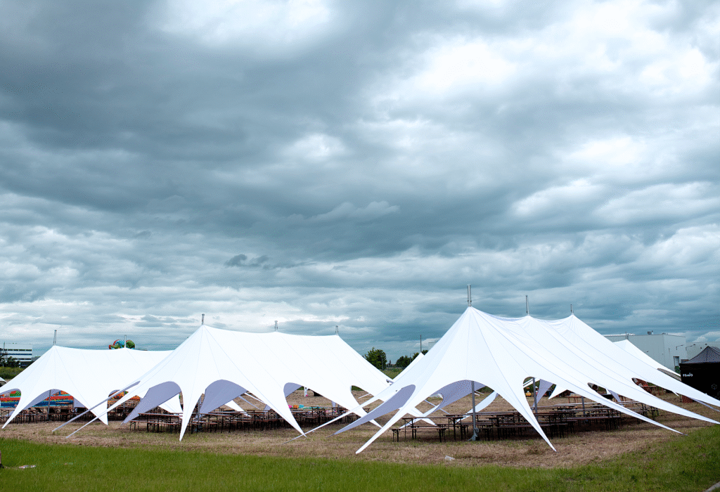 To główny powód, dla którego wypożyczenie namiotu imprezowego jest absolutnym must-have. Namiot daje pełną niezależność od kapryśnej pogody – a ta potrafi zepsuć nawet najlepiej zaplanowaną imprezę.